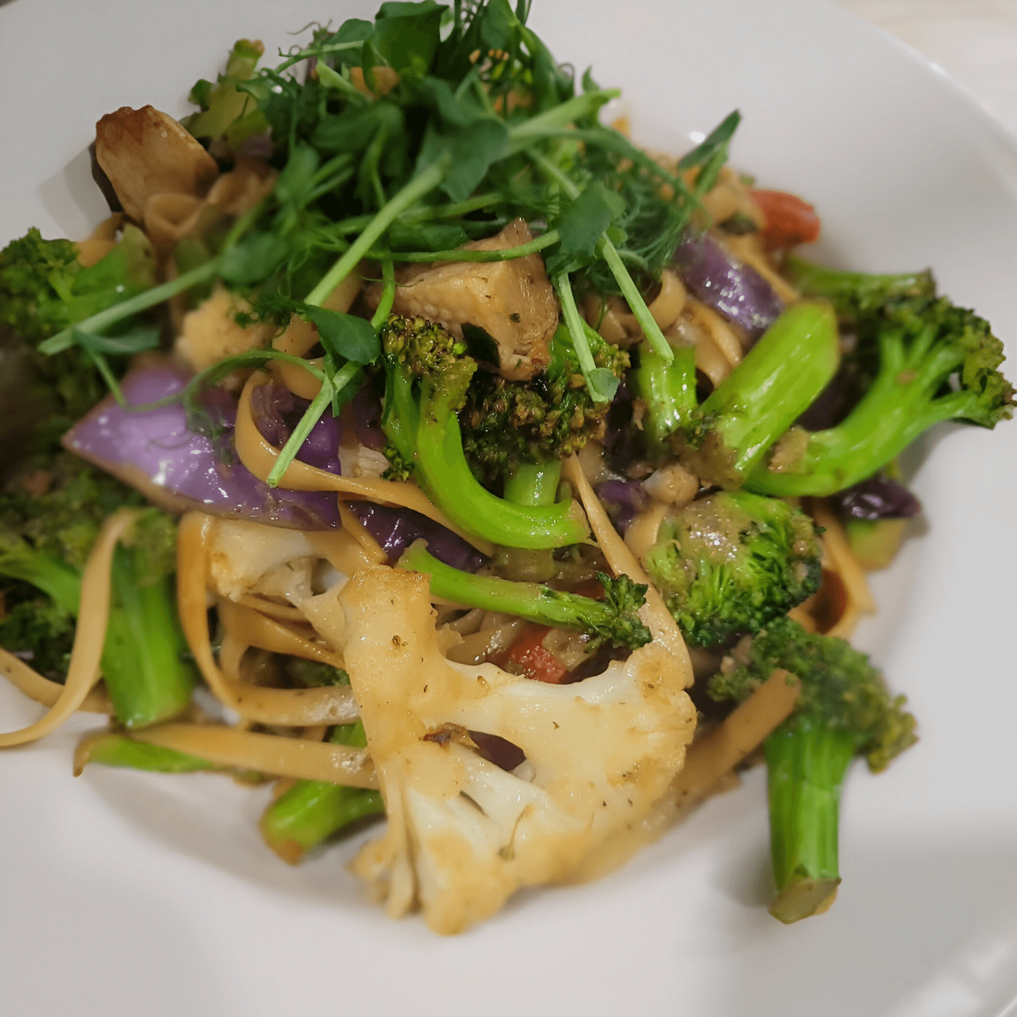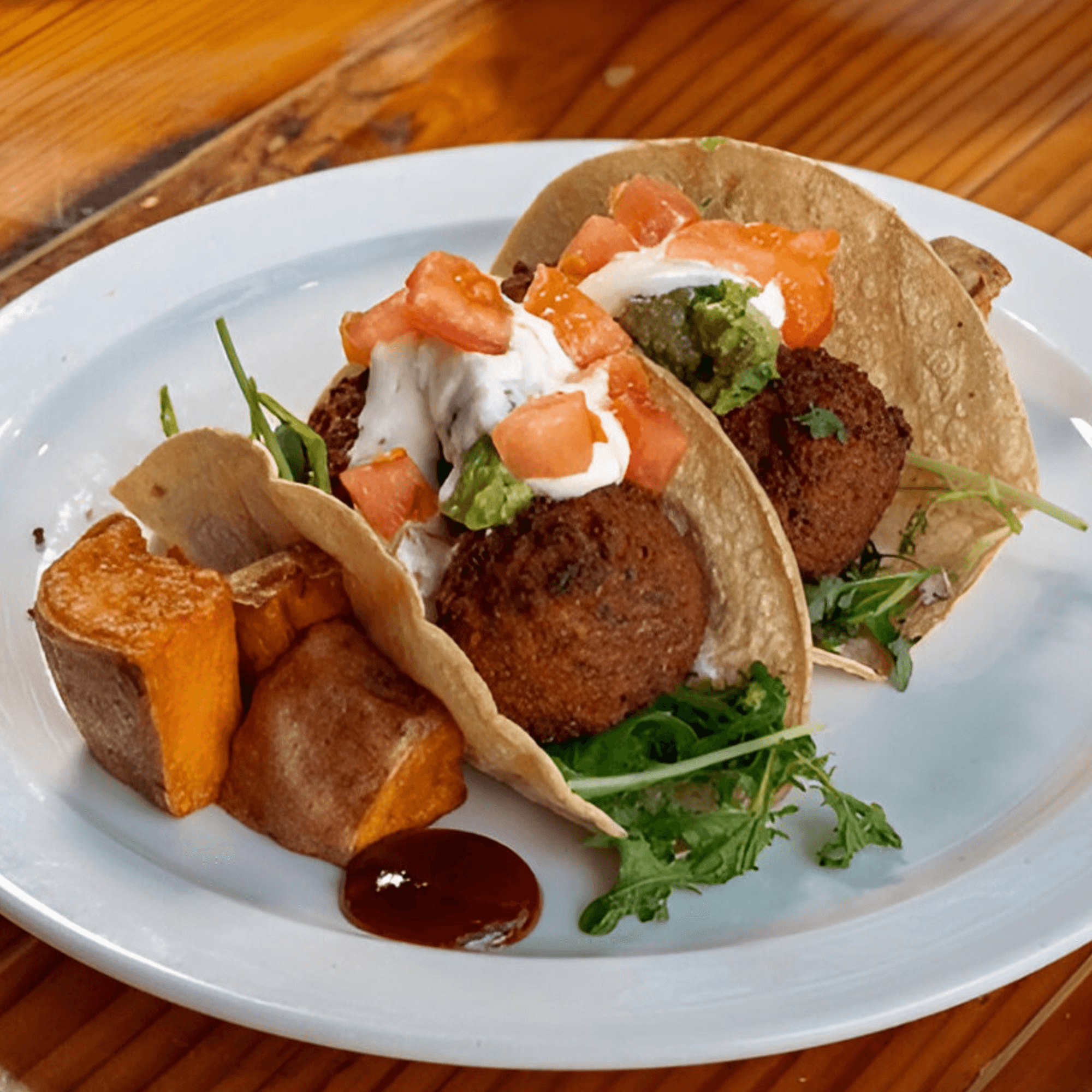 Best vegan cuisine I've eaten in a while. Service was amazing, a complementary cup of soup was exactly what we needed on a cold & rainy evening. The fried cauliflower in bbq sauce is a tasty starter, gumbo with yellow rice and greens was so good! Mushroom tacos looked pretty and tasted delicious, I did have to take half home, reheating didn't dry the food either. Try the ginger lemonade too.